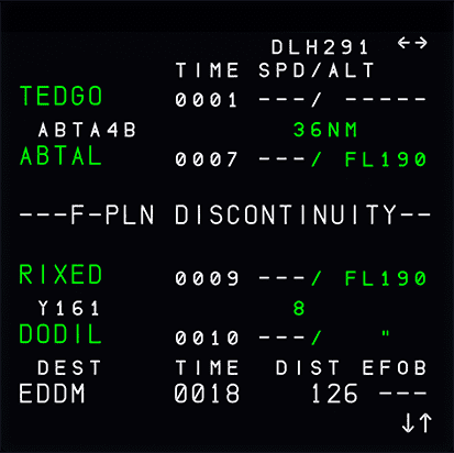 Discontinuities are breaks in the flight plan and often separate two flight plan sections, like the SID and first in-route waypoint or the STAR and the APPR. They are also often inserted when the flight plan is modified.