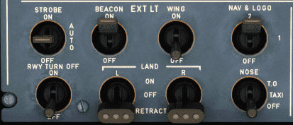 When turning into the gate, turn off your NOSE light and your RWY TURN OFF lights to not blind the ground personnel. This, of course, is only done at this point if enough lighting is available to safely park into the gate.