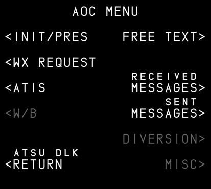 MCDU MENU: MCDU Menu Page