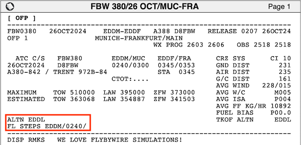 Note that waypoints, STARs, and SIDs may be called differently due to different nav-databases or different AIRAC cycles between simBrief and the simulator.