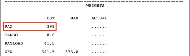 - Passengers (PAX) is the amount of passengers aboard.
