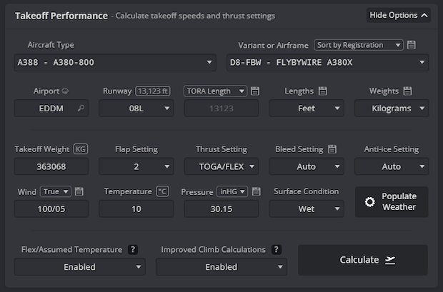Simbrief Takeoff Performance Calculater.